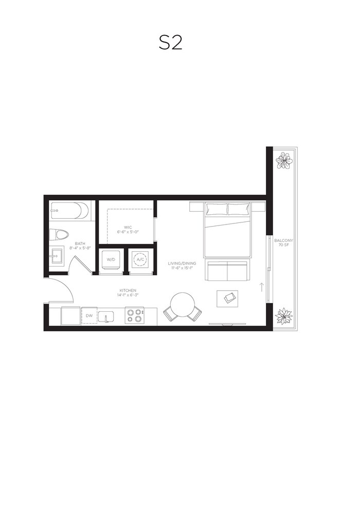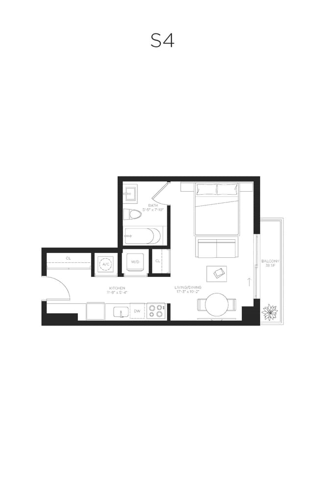 Apartment Model: S2From $2,200Studio, 1 Bath, 405 sq ftAvailable March 1, 2026![]()