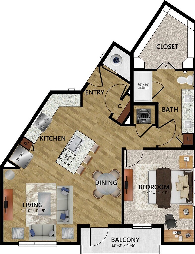 1 Bed, 1 Bath, 732 sq ftAvailable NowModel Gallery