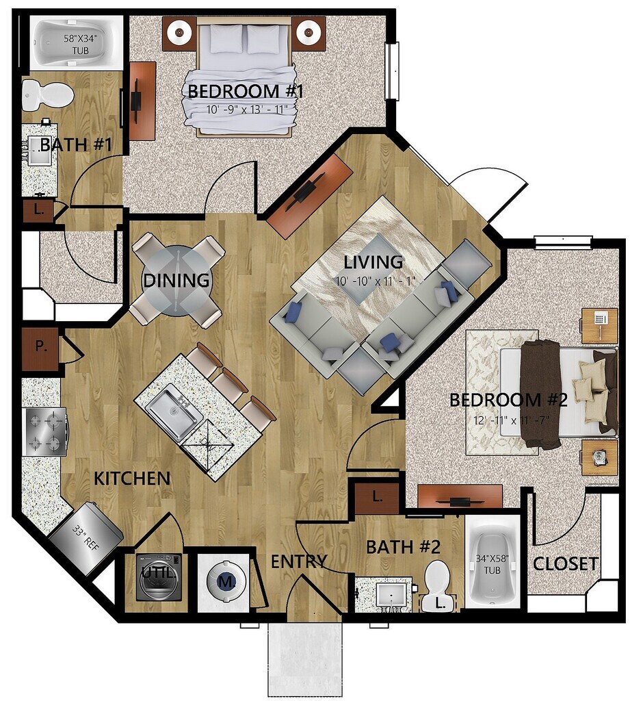 1 Bed, 1 Bath, 876 sq ftAvailable NowModel Gallery