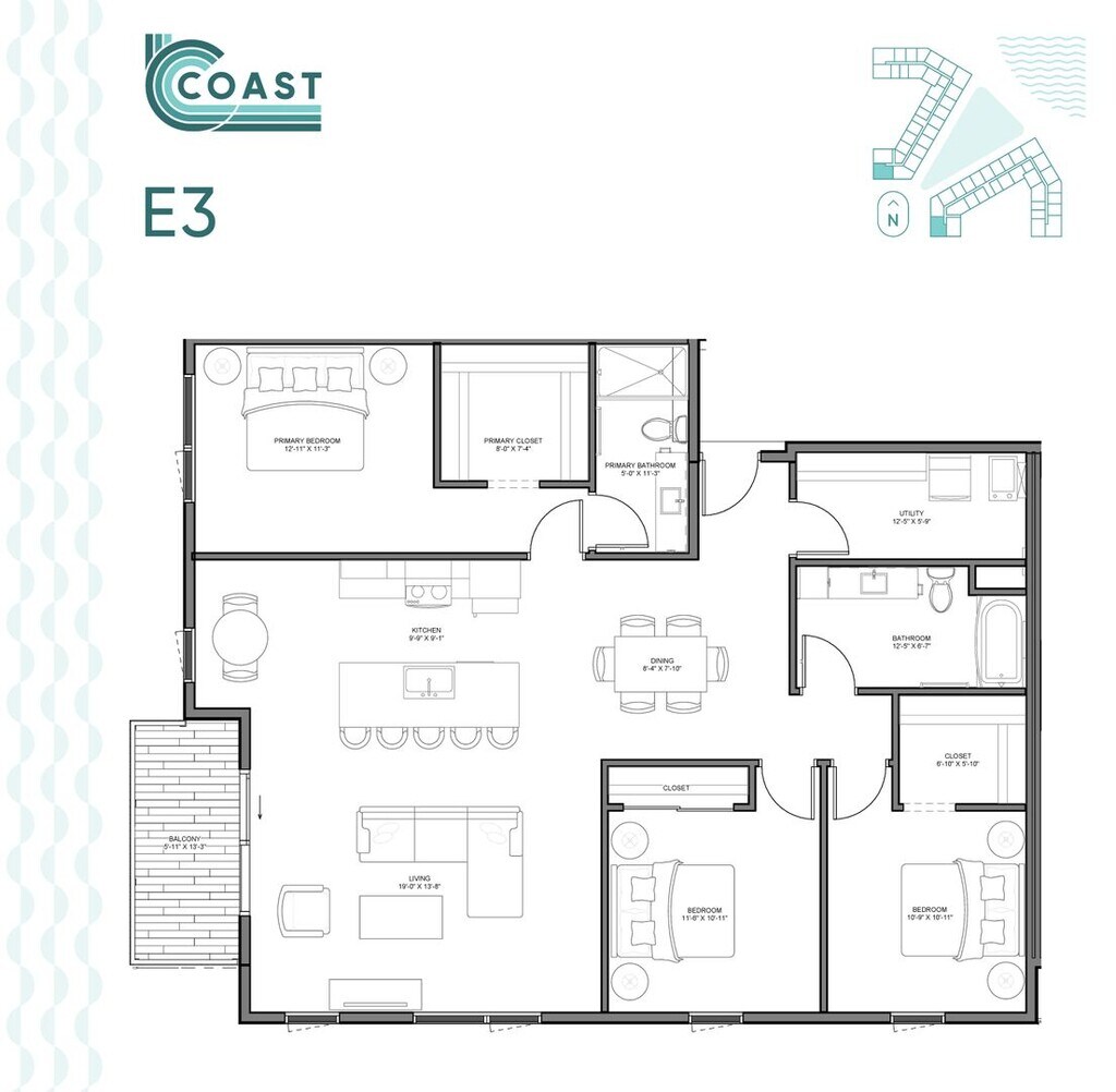 COAST at Lakeshore Commons offers 1 to 3 Bedroom apartments starting from $1,575 and having 774–1,558 sq ft. Here is the current pricing and availability: