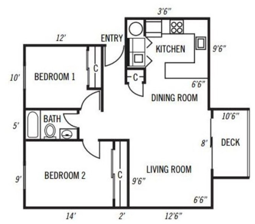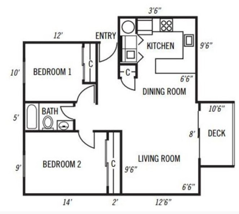 Apartment Model: 3x2C2Call For Rates3 Bedroom, 2 Bath, 1100-1132 sq ftUnavailable3x2C2 - Floorplan 1