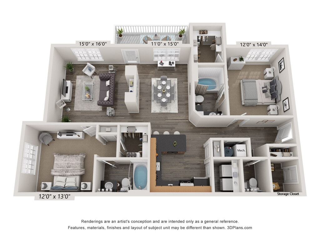 1 Bedroom to 3 Bedroom Apartments at Colton Creek currently range from $1,048 to $1,995