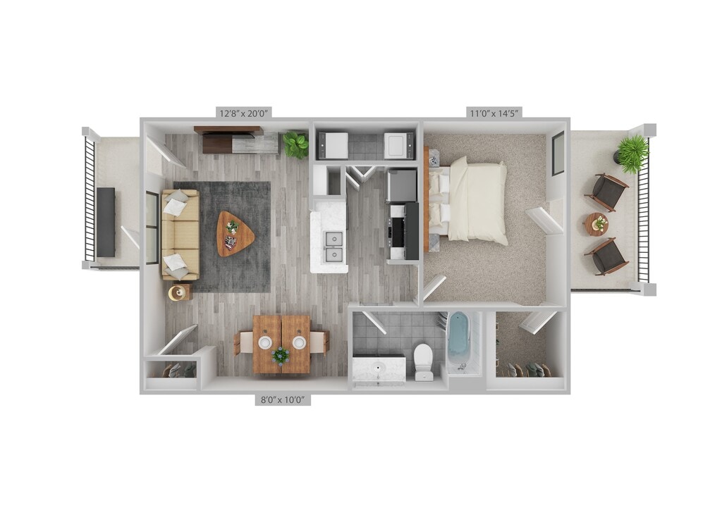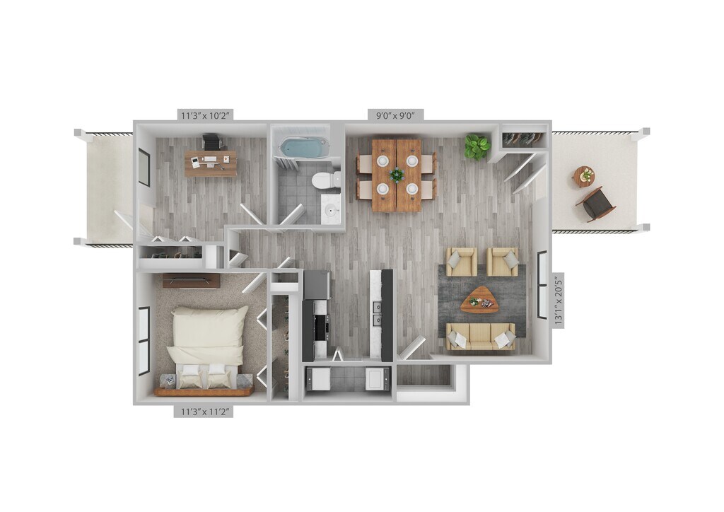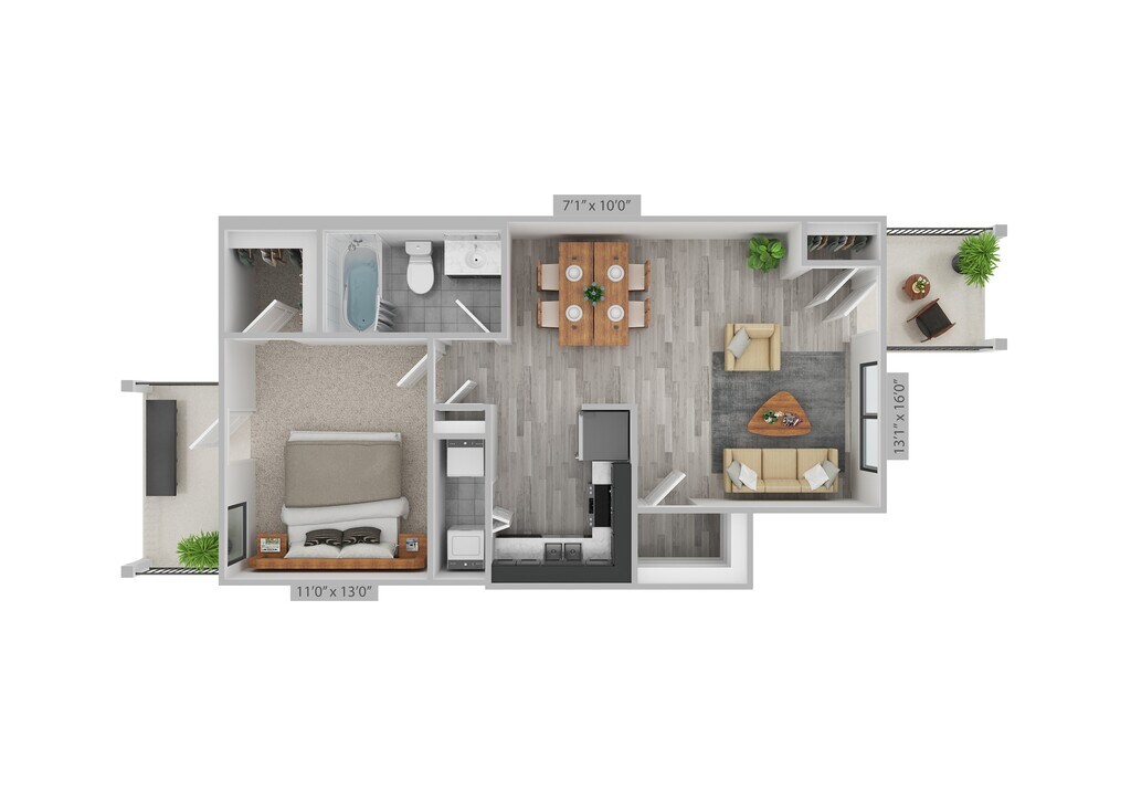 1 Bed, 1 Bath, 677 sq ftModel Gallery