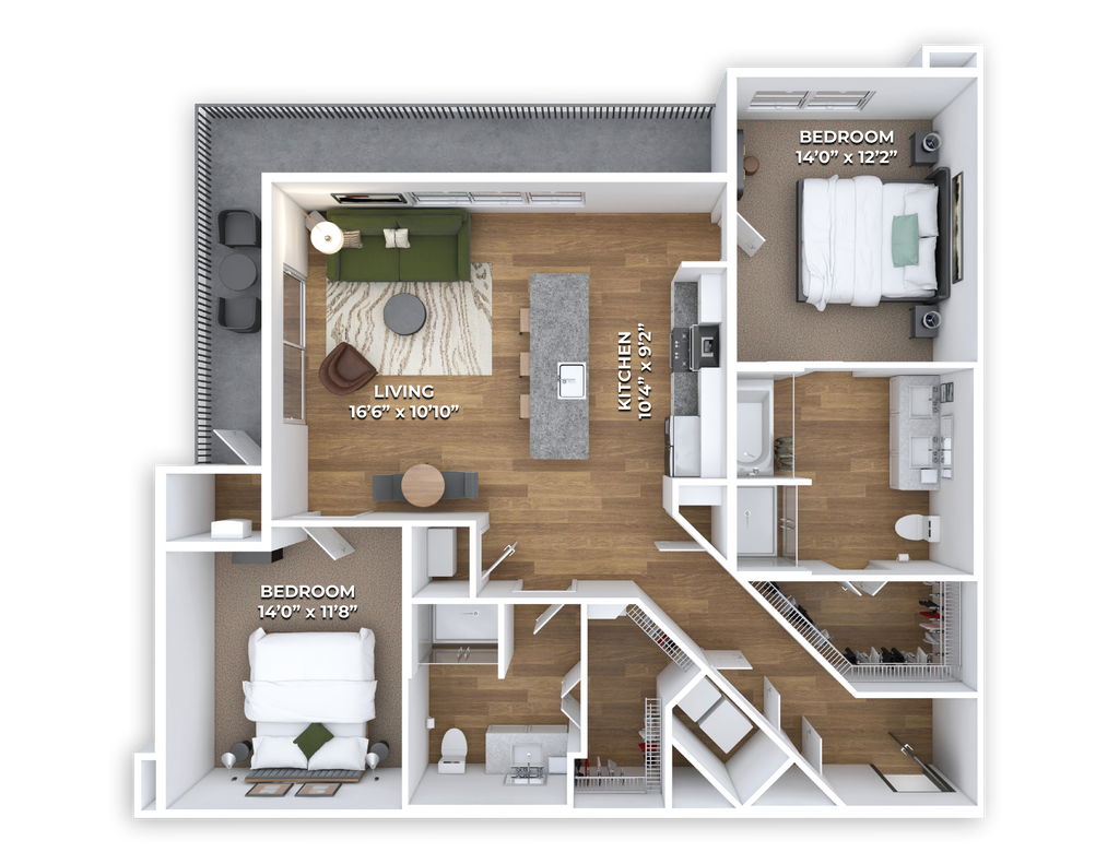 1 Bed, 1 Bath, 710 sq ftPlus FeesAvailable NowModel Gallery