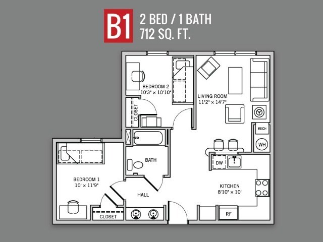 2 Beds, 1 Bath, 712 sq ftAvailable Jun 1Model Gallery