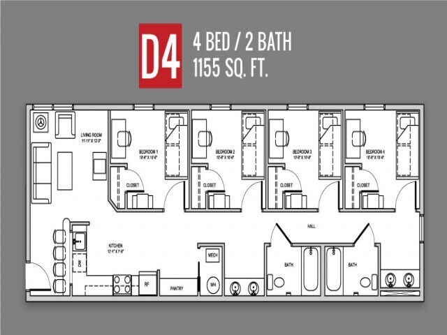 4 Beds, 2 Baths, 1155 sq ftAvailable Jun 1Model Gallery