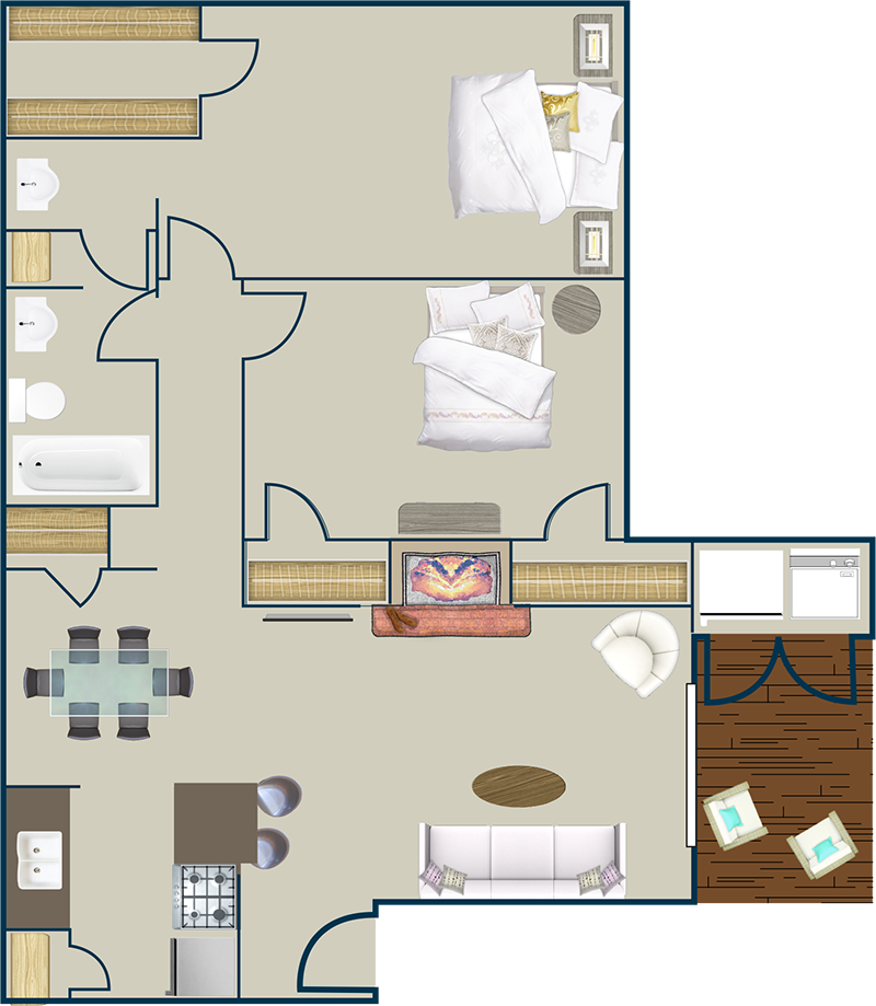 1 Bed, 1 Bath, 689 sq ftAvailable NowModel Gallery