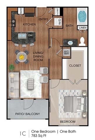 1C - Floorplan 1 Apartment Unit: 109Apartment Model: 1C1 Bedroom, 1 Bath, 783 sq ftAvailable NowApartment Unit: 445Apartment Model: 1C1 Bedroom, 1 Bath, 783 sq ftAvailable November 24, 2025Floorplan 1D