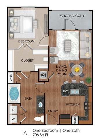 1 Bed, 1 Bath, 706 sq ftModel Gallery