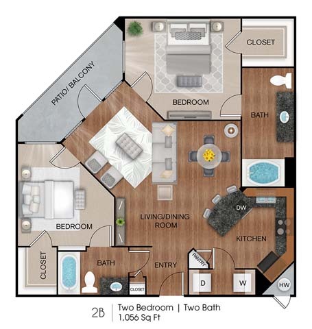 Apartment Model: 2B2 Bedroom, 2 Bath, 1056 sq ftAvailable December 12, 2025![]()