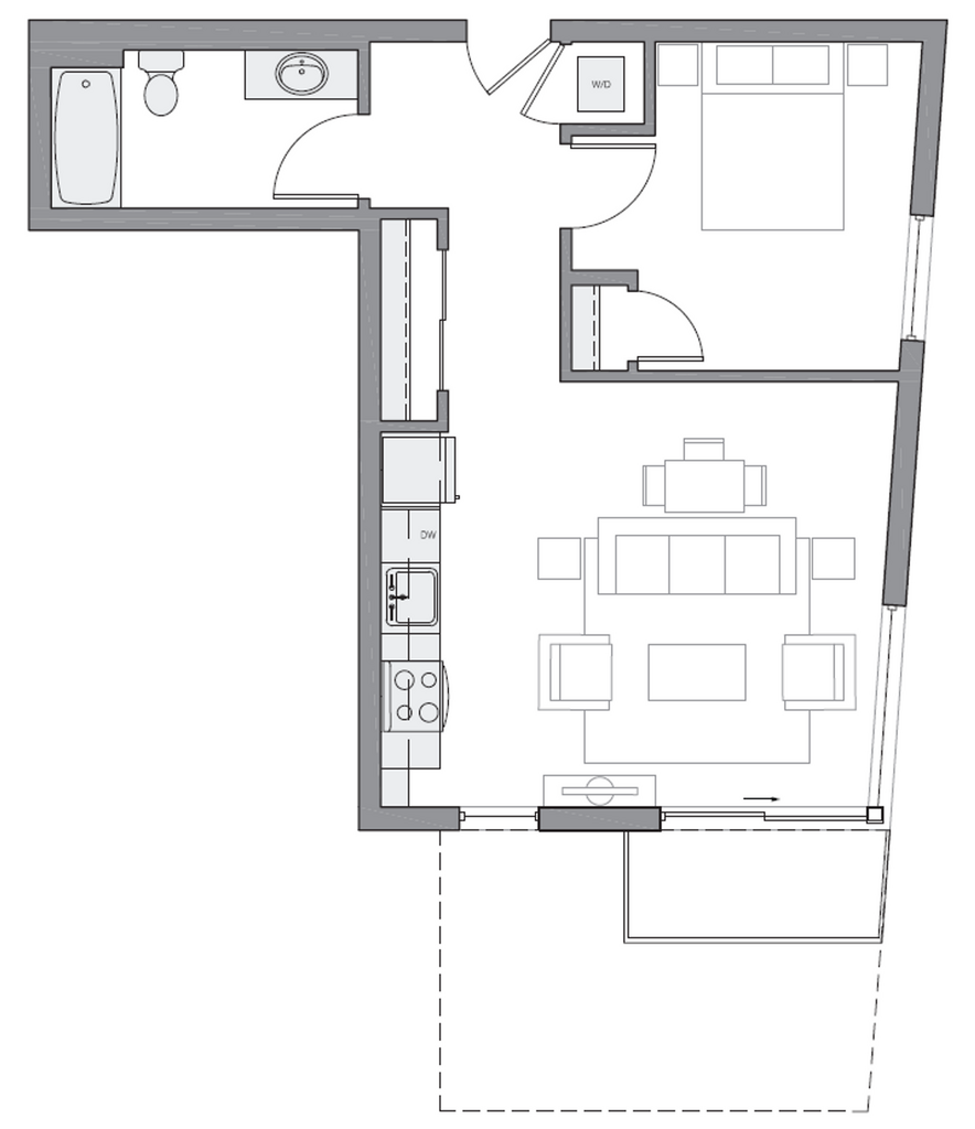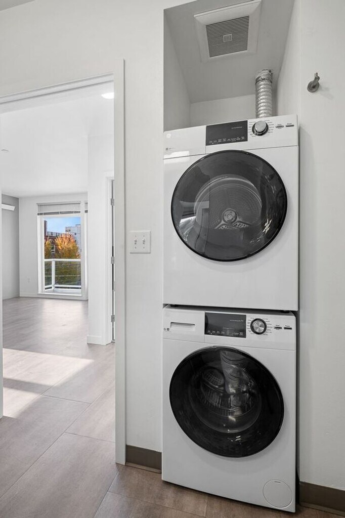 Welcome to your home on the way to everything. Crane at Interbay offers studio, 1 and 2 bedroom apartments for all of you Seattle commuters. A little about your new apartment community: • Large Roof Deck with BBQ, sink, and Fire Pit. Amazing views of Elliot Bay and Fisherman’s Wharf. • Roof top dog walk area. • Intimate Club Room with large screen TV, soft seating and Coffee Bar. Covered patio off the Club room overlooking the entry on 16th Ave W. • Two story amenity lobby. • Large art installations. • Iconic architecture. • LEED Gold design and construction standards • Design and Construction features such as: - Lush but drought tolerant landscaping including green roof gardens - High efficiency water boilers with circulating hot water system so that residents waste no water ‘waiting’ for the tap to get hot. - Front loading washer and dryer in each unit. - Insulated glass casement windows with high STC rating to minimize exterior noise [when shut :)]. - Low-flow fixtures to reduce water usage. - Quartz counter tops - Stainless steel high efficiency GE appliances. - Fabulous views of Elliott Bay - Many units have large walk through closets providing secondary private entrance between the bathroom and bedroom. - Secured fob door entry system with a single device to access the building, its common areas and your own apartment. About the Neighborhood: Interbay, as the name implies is between two bays: Salmon Bay on the north, part of the Lake Washington Ship Canal, across which is Ballard; on the south by what remains of Smith Cove, an inlet of Elliott Bay; The neighborhood which is in the valley between Queen Anne and Magnolia Hills is bordered on the East by 15th Avenue W. and Elliott Avenue W.; and on the West by Thorndyke, 20th, and Gilman Avenues W. Within easy walking distance of Crane are the following neighborhood businesses and parks: • Interbay Golf Course and Driving Range • Interbay P- Patch Garden • SPU Soccer Field • Myrtle Edwards Waterfront Park and bike path • Across the street from - Red Mill Burgers - Pagliacci Pizza - QFC • Easy walking or bus ride to dining, Whole Foods, and the D LIne and 32 Bus Route As the Urbanist wrote: The building "resembles railway boxcars or storage containers taking design cues from the massive rail-based container transfer facility just west of the site. The facade reinforces those attributes with corrugated steel painted in a variety of warm colors. The colors emphasize the boxy form of containers and build verticality while serving to breakup the scale and bulk of the structure. Perhaps most striking in the building is the exterior staircase framed by a ribbon of mercurial orange. The framing offers the perfect opportunity to highlight the namesake of the building to passerby on 15th Ave W. Meanwhile, the architects have also implemented progressive step-backs of the structure to further reduce the weight of the building over the public realm below. Doing so has enabled space on the upper floors to be used for semi-private spaces like balconies and common gardens for residents.”