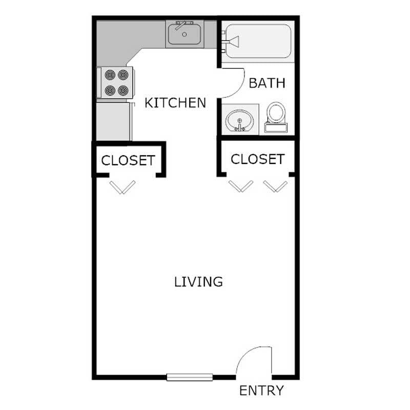 Studio, 1 Bath, 329 sq ftPlus FeesAvailable NowAvailability Details