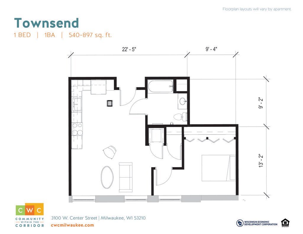 Studio to 4 Bedroom Apartments at CWC Community Within the Corridor currently range from $854 to $1,736