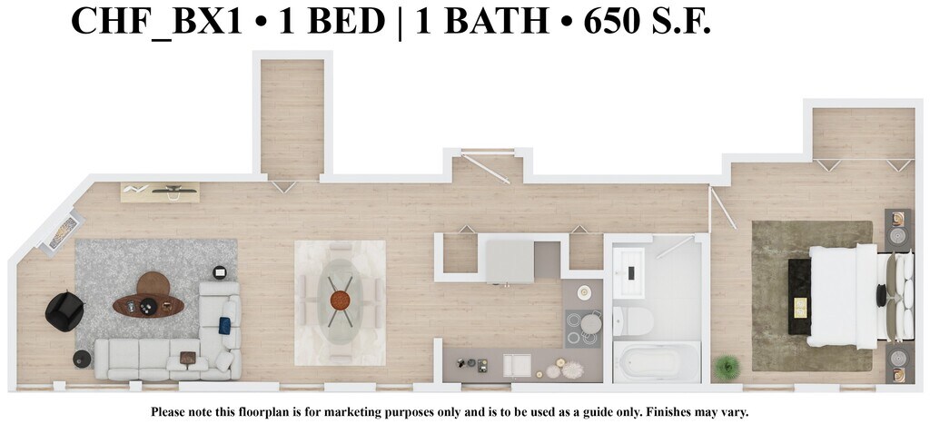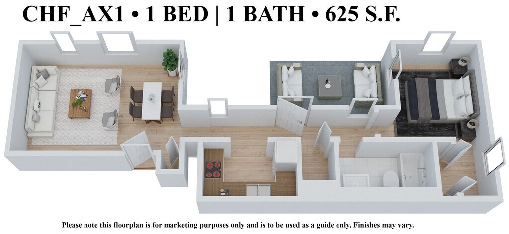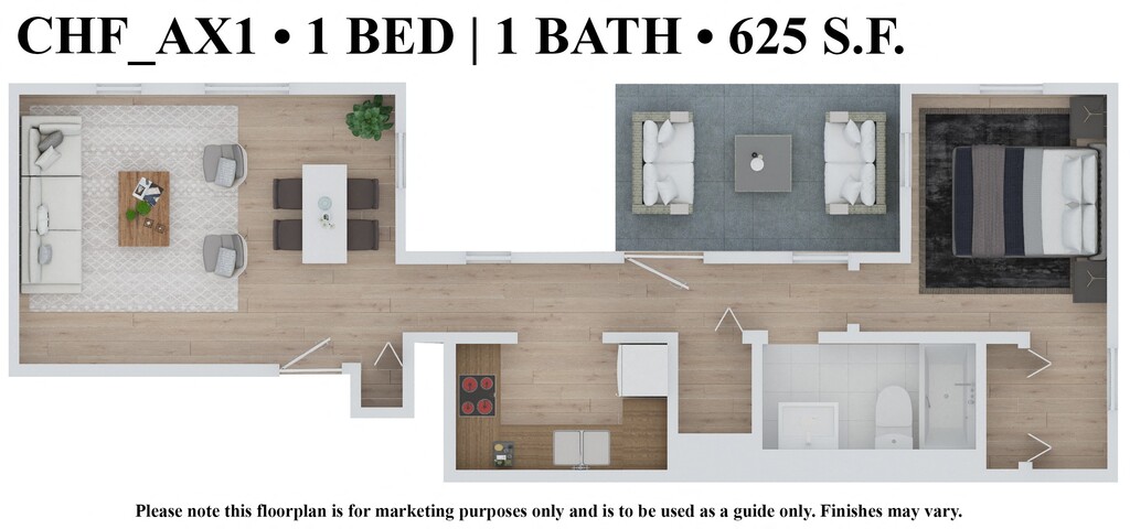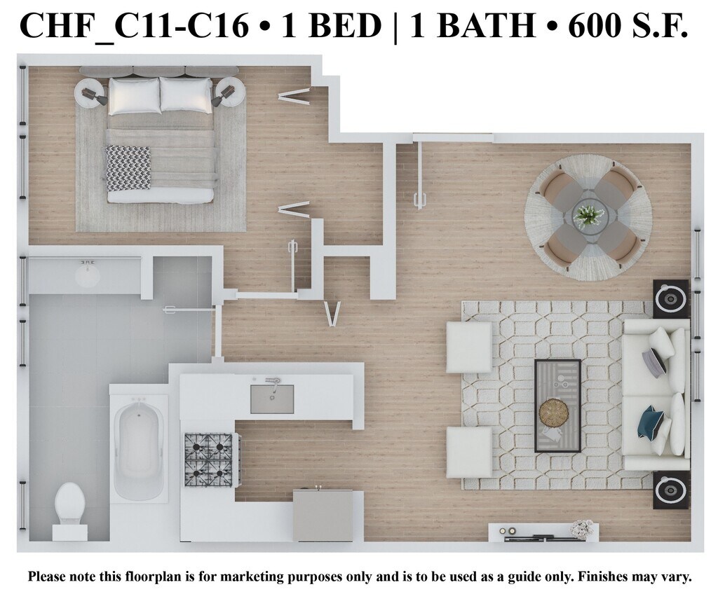 One Bedroom One Bath - CHF625 - Floorplan 3 ![]()