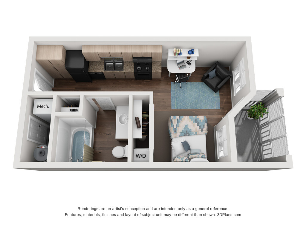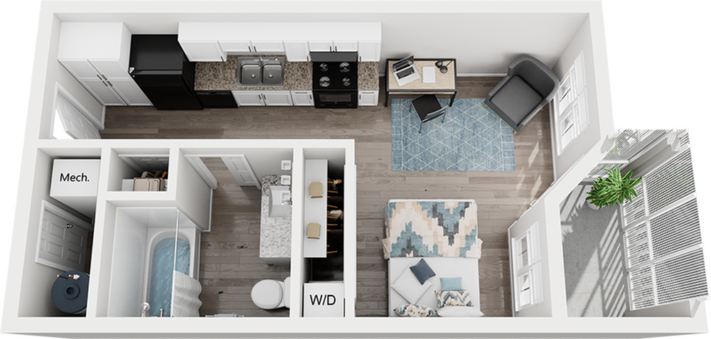 Studio, 1 Bath, 420 sq ftAvailable NowModel Gallery