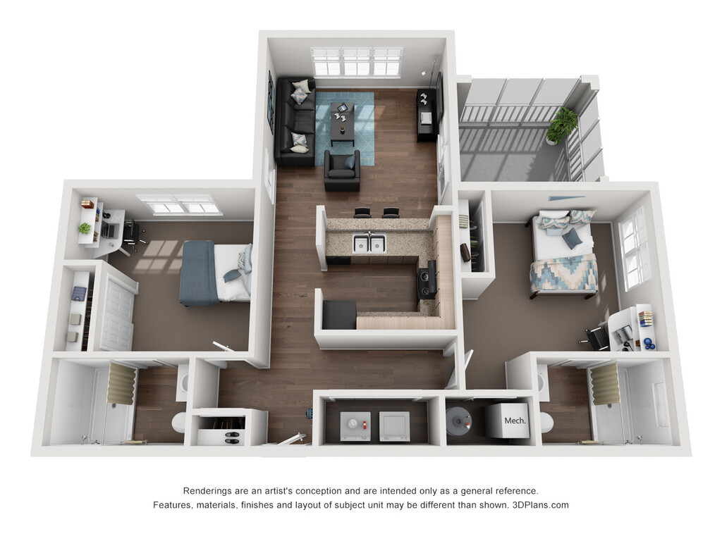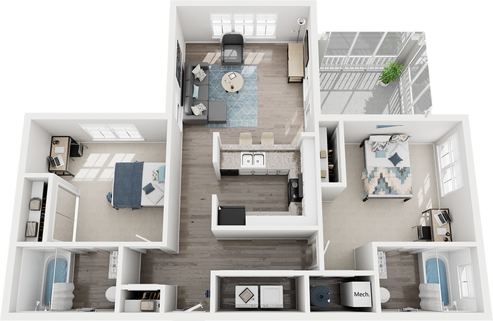 2 Beds, 2 Baths, 972 sq ftAvailable NowModel Gallery