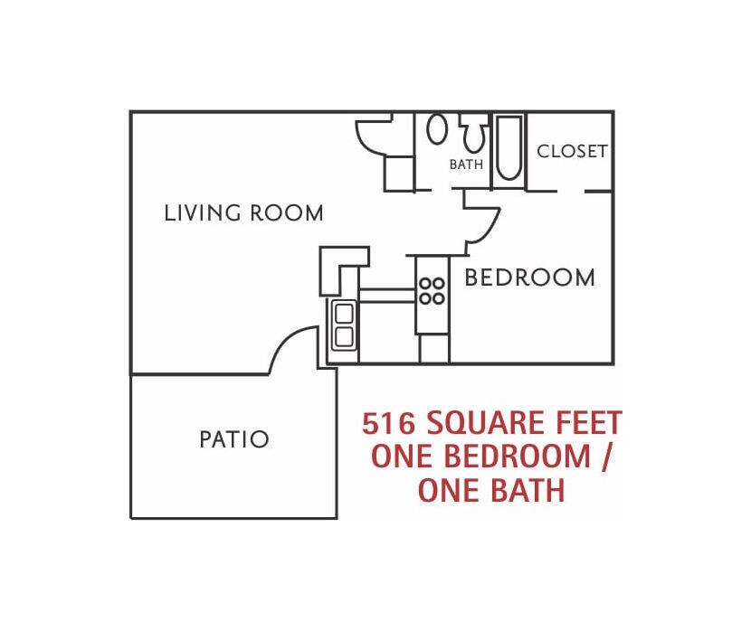 1 Bed, 1 Bath, 516 sq ftModel Gallery
