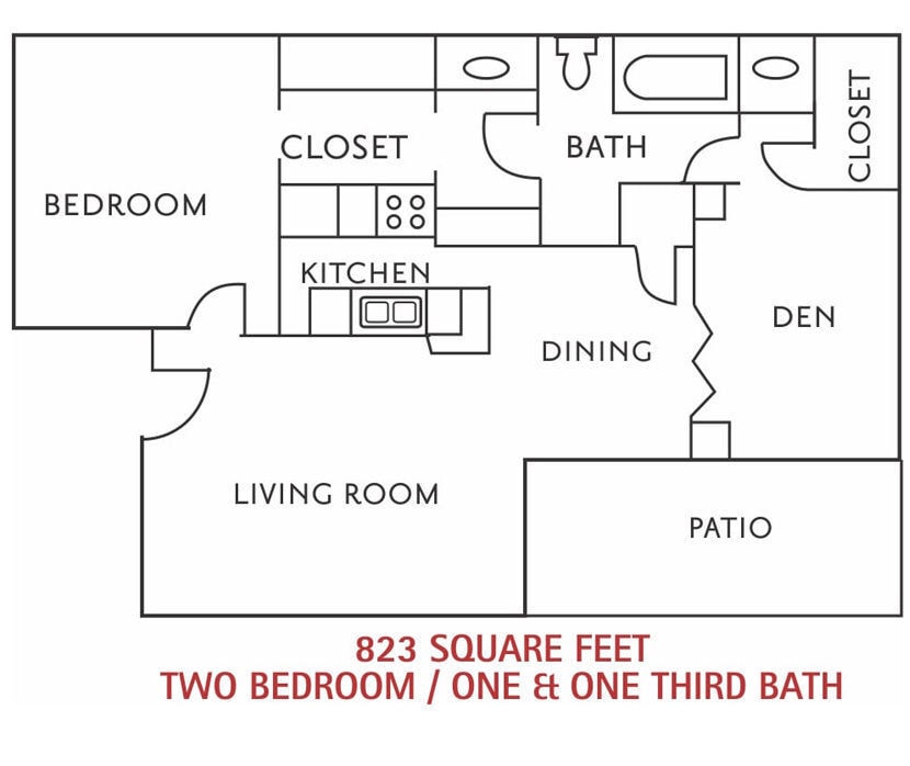 2 Beds, 1 Bath, 823 sq ftLargest 2 BedroomThis is the largest 2 Bedroom at this PropertyModel Gallery