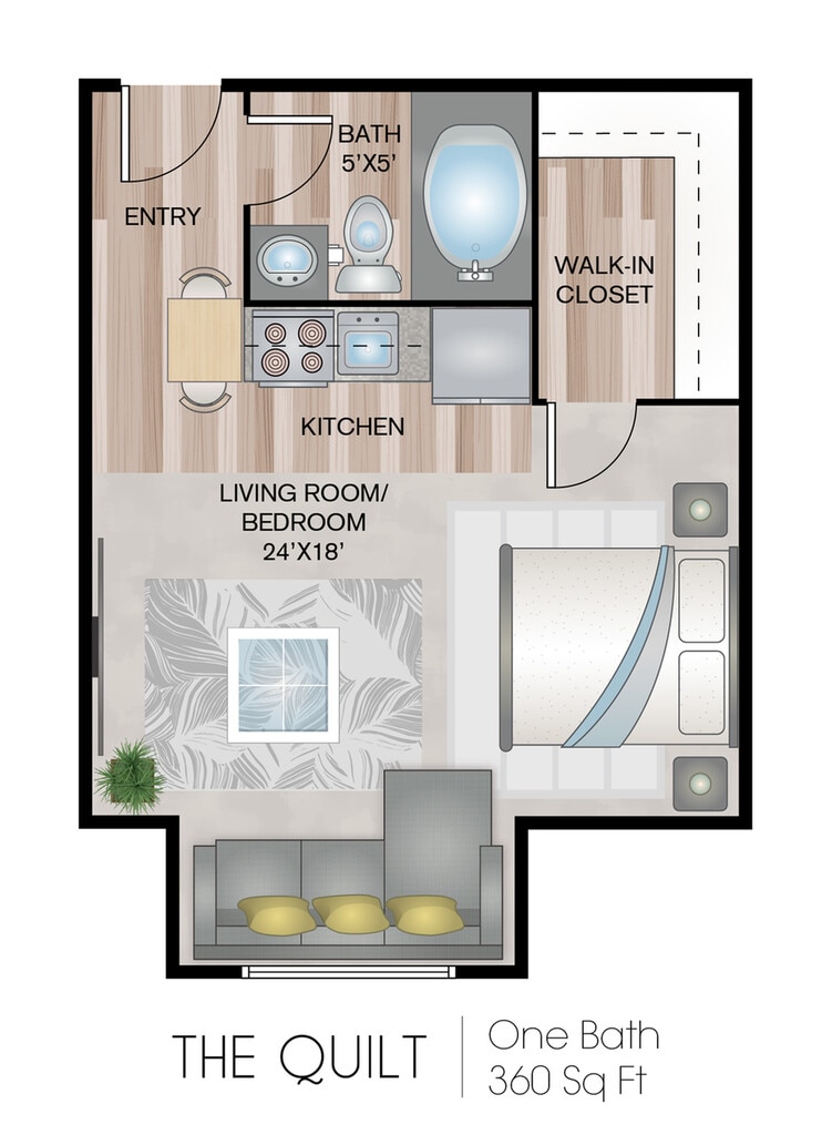 Apartment Model: The Quilt PremiumCall For RatesStudio, 1 Bath, 360 sq ftUnavailable![]()