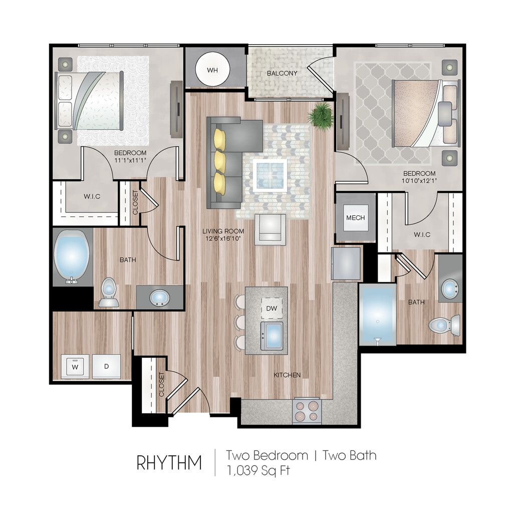 1 Bed, 1 Bath, 703-710 sq ftAvailable NowCheapest 1 BedroomThis is the cheapest 1 Bedroom at this PropertyModel Gallery