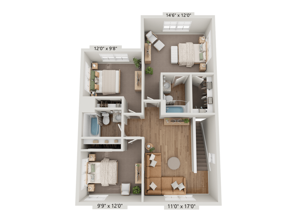 - 4 Bedrooms- Floorplan D1- $2,1704 Beds, 2.5 Baths, 1539 sq ftAvailable Now- Model Gallery- Floorplans- Availability Details- Price - Availability Date - Unit - Sq Ft - Deposit - $2,170 - Available Now - 804 - 1539 - $500 - Model Amenities and Features- Features- Air Conditioning