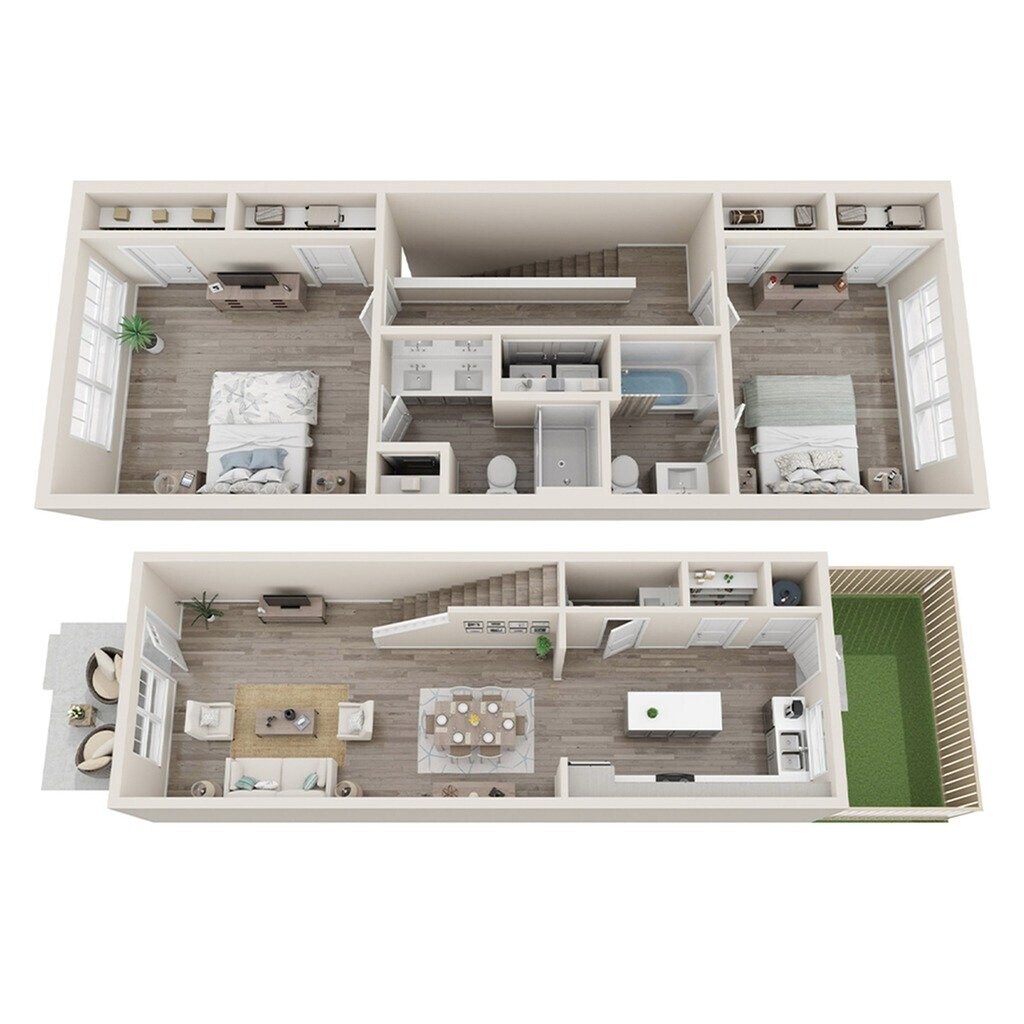 Apartment Model: 2 Bed Willow Townhome Middle UnitFrom $1,7472 Bedroom, 2.5 Bath, 1408 sq ftAvailable Now![]()