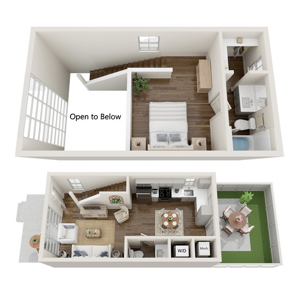 1 Bed Palmetto Loft - Floorplan 1 2 Bedrooms