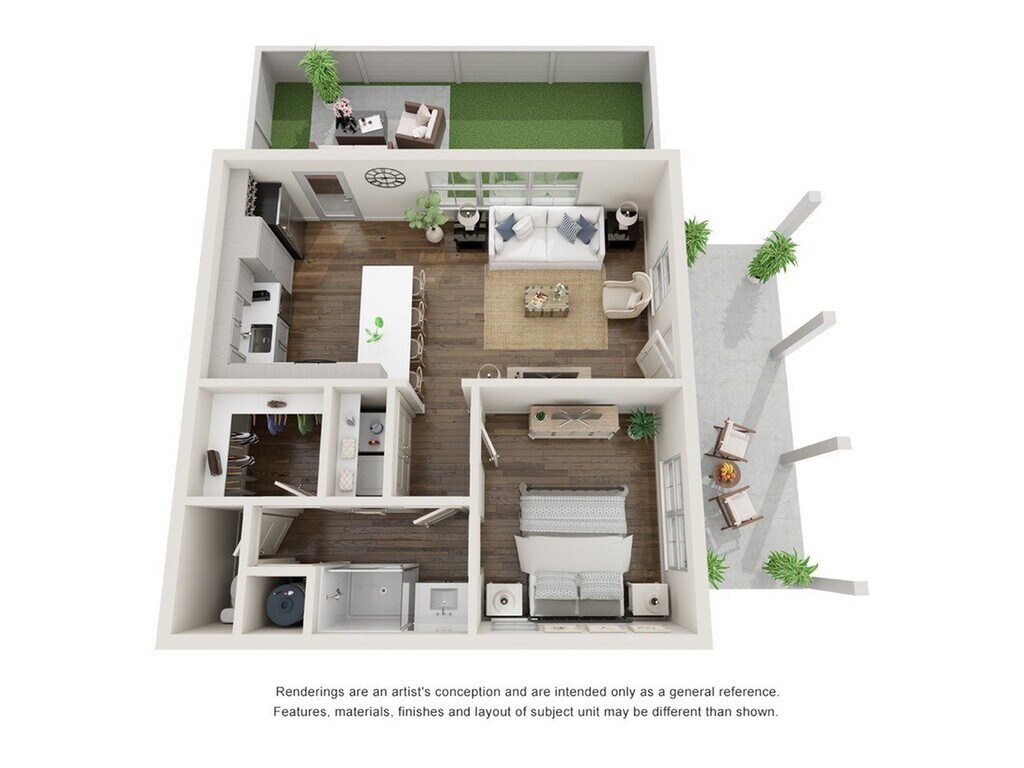 1 Bed, 1 Bath, 734 sq ftModel Gallery