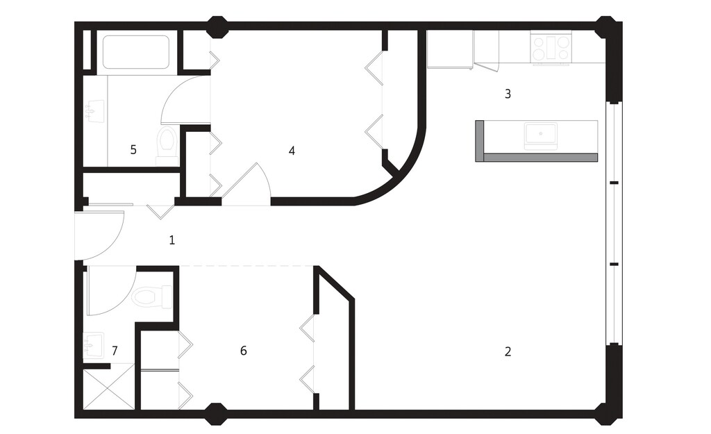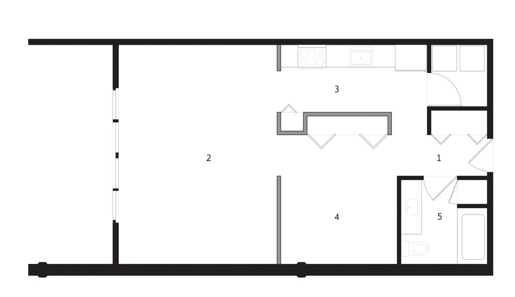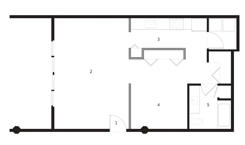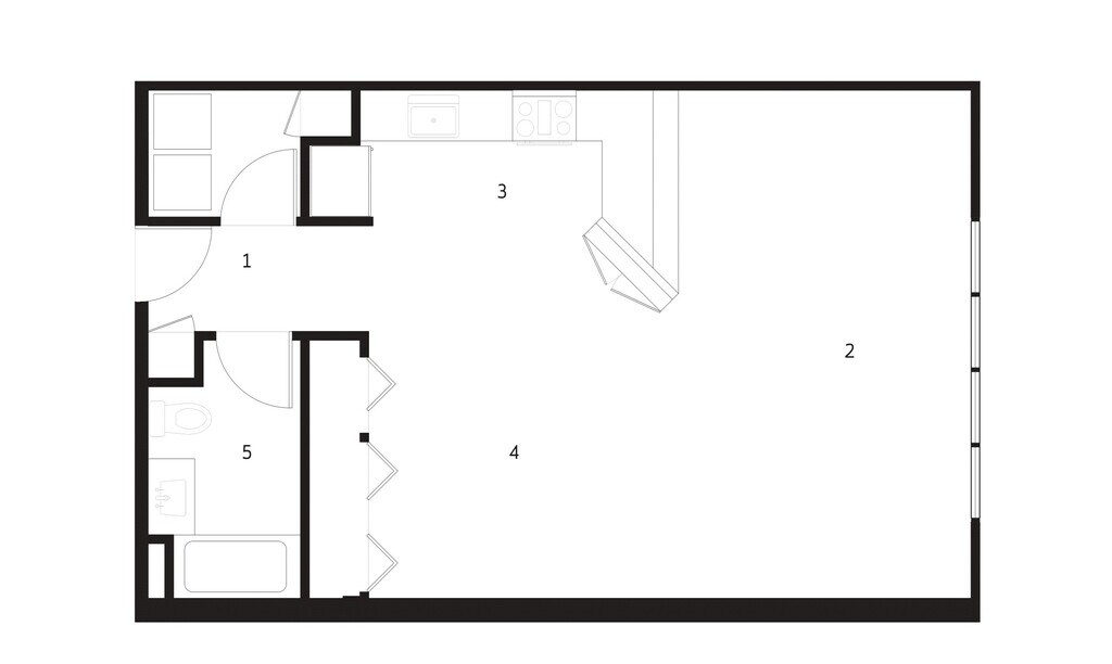 B4 - Floorplan 1 Apartment Unit: 113Apartment Model: B4Studio, 1 Bath, 700 sq ftAvailable NowFloorplan B2