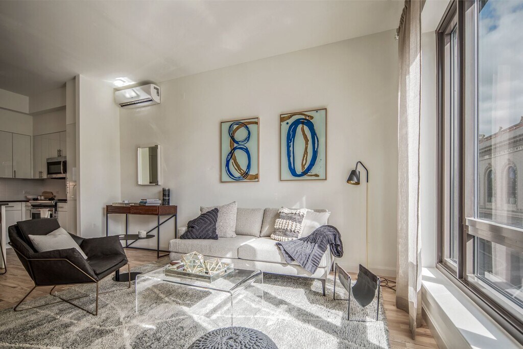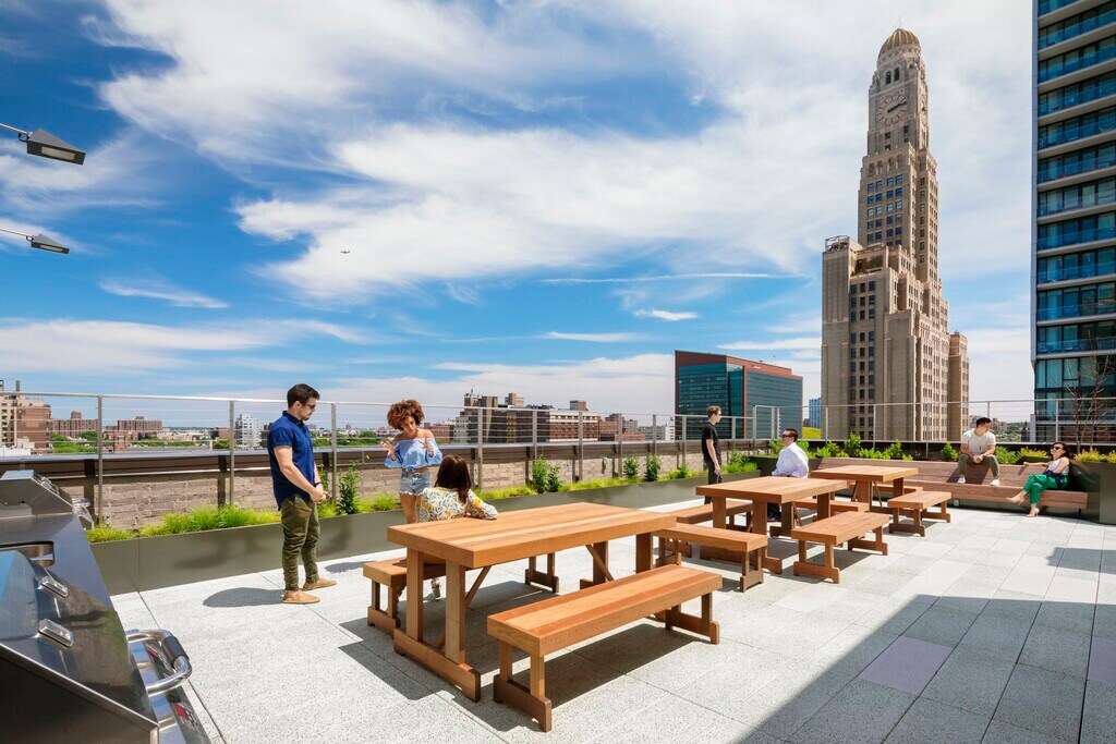 Pause. And step into your Brooklyn sanctuary. Caesura is your refuge from the city providing amenity spaces designed to sustain body, mind, and spirit including a rooftop garden with indigenous plants, kitchen, and grills, and a double-height conservatory for quiet contemplation. Also, helping you further your sense of well-being, residents enjoy a fitness center, community lounge with kitchenette and game room, bike room with sink and tool station, and access to our "Common Goods" lending library of useful items.
