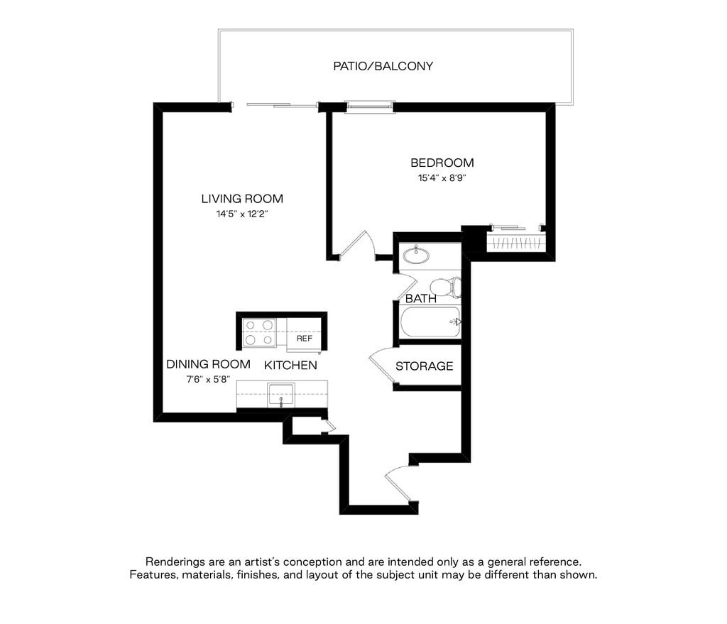 1 Bed, 1 Bath, 586 sq ftAvailable NowModel Gallery