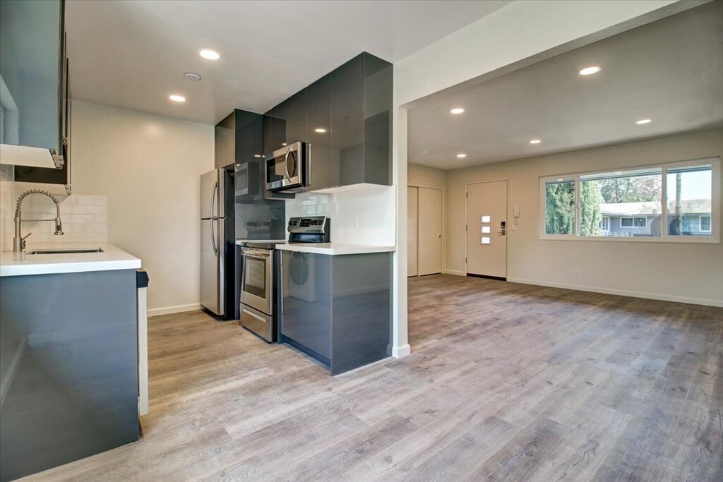 COMPLETELY REMODELED! This newly remodeled apartment features a modern design, premium appliances, air conditioning, intercom entry, keyless entry, recessed lighting, smart bathroom mirror, dual pane windows, engineered wood floors, highly desirable finishes throughout, and in unit laundry. The bedroom is generous in size with ample closet space. A parking spot is included in your rent. Conveniently located in the Shoreline West neighborhood adjacent to Rengstorff Park and downtown Mountain View filled with endless restaurants, shops, and all other amenities. Close proximity to the Caltrain station, Googleplex, Meta and other start-ups and tech companies. Very easy access to both I-280 and US-101 freeways complete this ideally located home. FEATURES: • Second Floor Apartment • Remodeled Kitchen • Remodeled Bathroom • Modern Design Throughout • Air Conditioning • Dishwasher • Keyless Entry • Smart Lighting /w Feit Electric • On site Manager • In Unit Laundry • Free parking GRI Property Management DRE#02201478