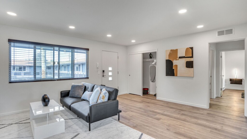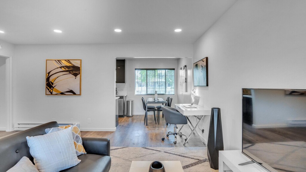 COMPLETELY REMODELED! This newly remodeled apartment features a modern design, premium appliances, air conditioning, intercom entry, keyless entry, recessed lighting, smart bathroom mirror, dual pane windows, engineered wood floors, highly desirable finishes throughout, and in unit laundry. The bedroom is generous in size with ample closet space. A parking spot is included in your rent. Conveniently located in the Shoreline West neighborhood adjacent to Rengstorff Park and downtown Mountain View filled with endless restaurants, shops, and all other amenities. Close proximity to the Caltrain station, Googleplex, Meta and other start-ups and tech companies. Very easy access to both I-280 and US-101 freeways complete this ideally located home. FEATURES: • Remodeled Kitchen • Remodeled Bathroom • Modern Design Throughout • Air Conditioning • Dishwasher • Keyless Entry • Smart Lighting /w Feit Electric • On site Manager • In Unit Laundry • Free parking