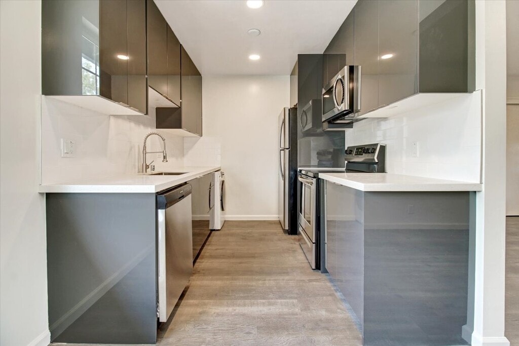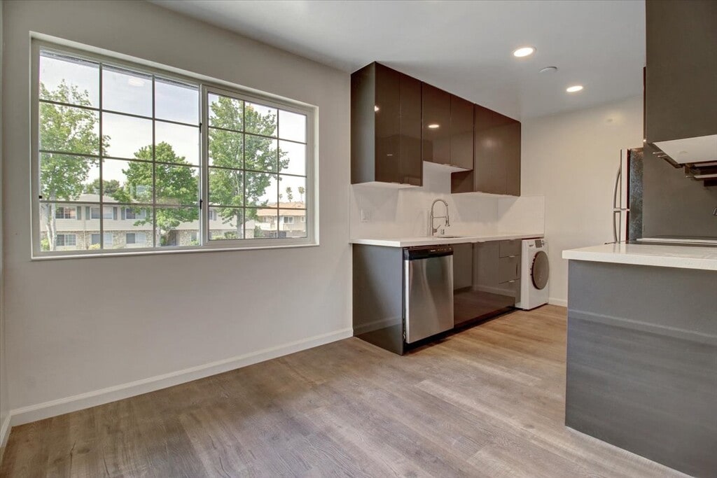 COMPLETELY REMODELED! This newly remodeled apartment features a modern design, premium appliances, air conditioning, intercom entry, keyless entry, recessed lighting, smart bathroom mirror, dual pane windows, engineered wood floors, highly desirable finishes throughout, and in unit laundry. The bedroom is generous in size with ample closet space. A parking spot is included in your rent. Conveniently located in the Shoreline West neighborhood adjacent to Rengstorff Park and downtown Mountain View filled with endless restaurants, shops, and all other amenities. Close proximity to the Caltrain station, Googleplex, Meta and other start-ups and tech companies. Very easy access to both I-280 and US-101 freeways complete this ideally located home. FEATURES: • Corner Second Floor Apartment • Remodeled Kitchen • Remodeled Bathroom • Modern Design Throughout • Air Conditioning • Dishwasher • Keyless Entry • Smart Lighting /w Feit Electric • On site Manager • In Unit Laundry • Free parking GRI Property Management DRE#02201478