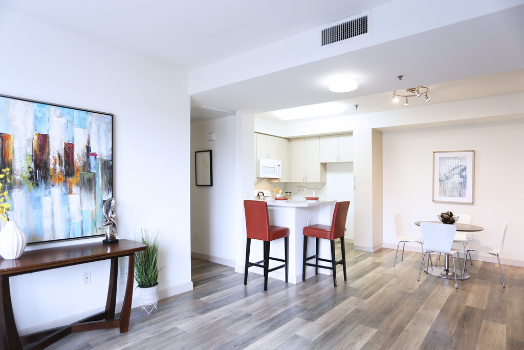 Enjoy the convenience of urban living while located on a quiet residential street. You will have easy access to plenty of quality shopping, restaurants, theaters and entertainment. Whole Foods, Gelsons, Ralphs are nearby and you are just moments from NoHo and Studio City. Convenient freeway access and public transportation are minutes away. Our apartment homes surround a gracious courtyard, resort style pool, gym with dance studio, dog park and Great Room with WiFi and TV.Whether you choose a 1, 2 or 3-bedroom apartment your sophisticated apartment home will provide must have amenities including central air conditioning, 9 foot ceilings, and designer upgrades including a plank floor or new carpet, a modern kitchen with built-in microwave and convenient breakfast bar, custom colors, spa style baths with new quartz counters, huge walk-in closets and excellent storage space. Many apartments have washer/dryer hook-ups. Each apartment home has a yard, huge patio, or balcony.