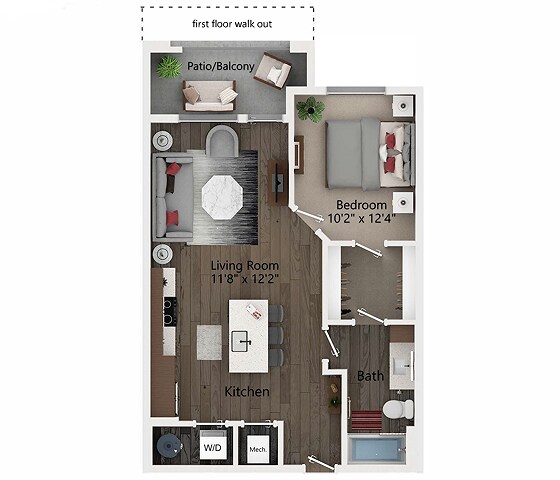 Apartment Model: S1From $1,255Studio, 1 Bath, 549 sq ftAvailable NowFloor plans are artist's rendering. All dimensions are approximate. Actual product and specifications may vary in dimension or detail. Not all features are available in every rental home. Prices and availability are subject to change. Base rent is based on monthly frequency. Additional fees may apply, such as but not limited to package delivery, trash, water, amenities, etc. Deposits vary. Please see a representative for details.
