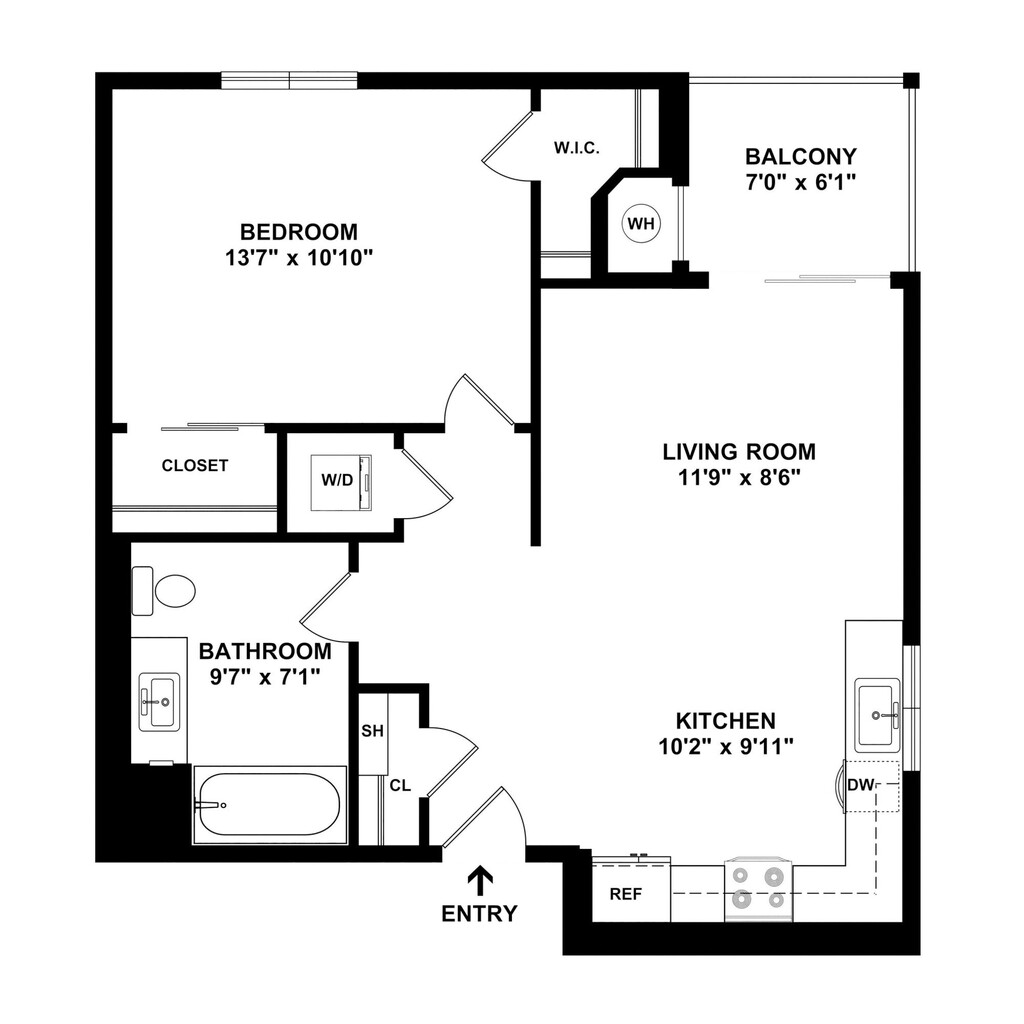 1 Bed, 1 Bath, 665 sq ftPlus FeesAvailable NowModel Gallery