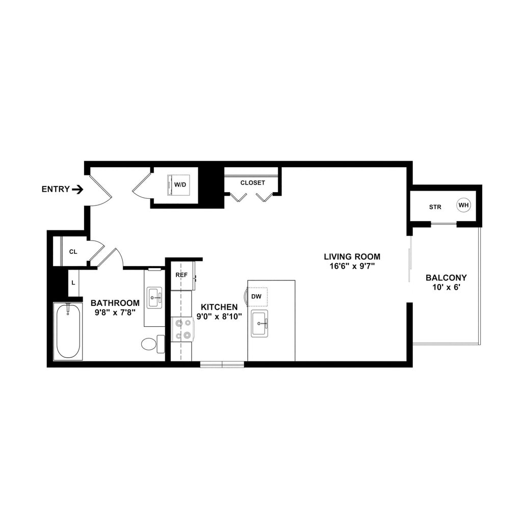 Studio, 1 Bath, 550 sq ftPlus FeesAvailable NowModel Gallery