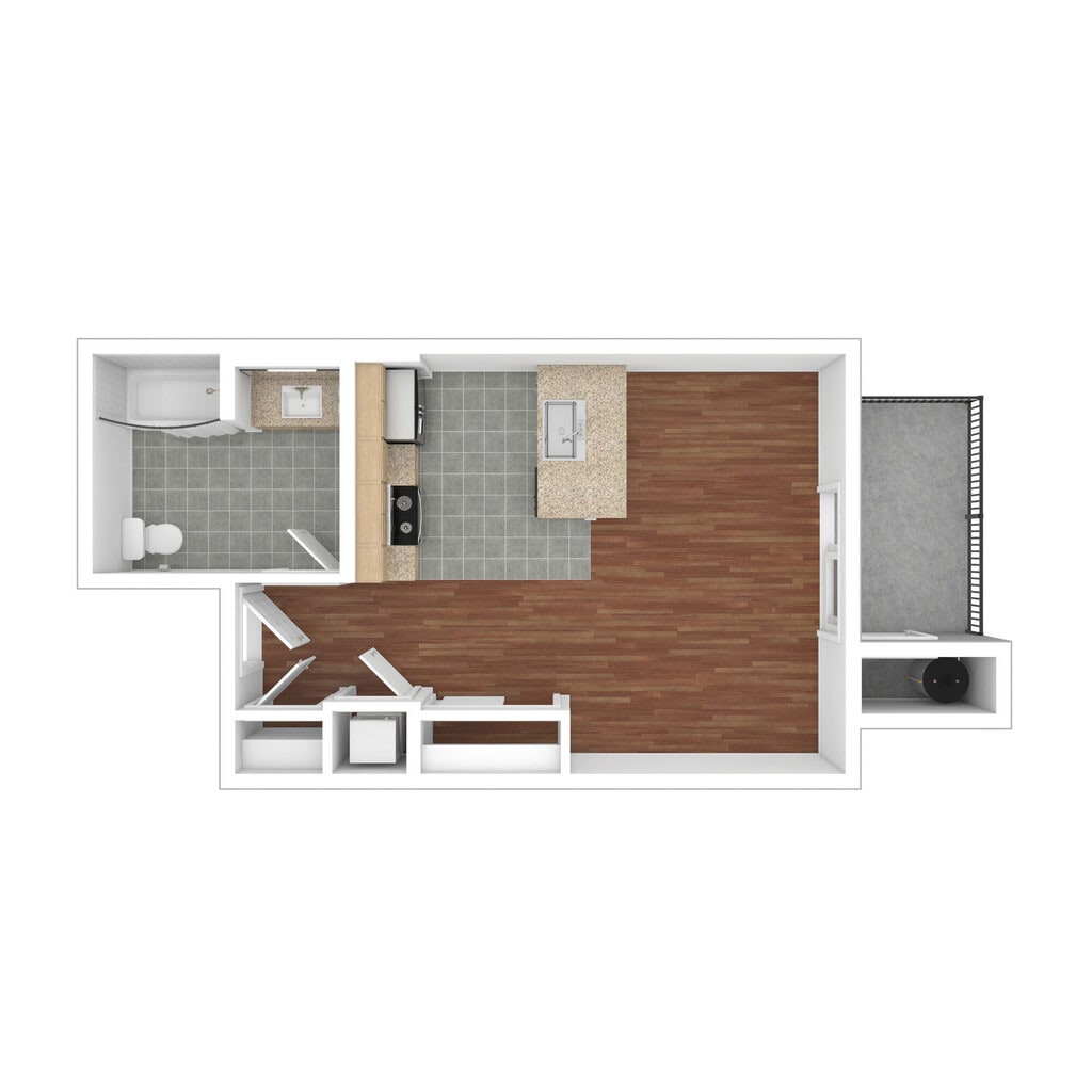 Studio, 1 Bath, 528 sq ftPlus FeesAvailable NowModel Gallery