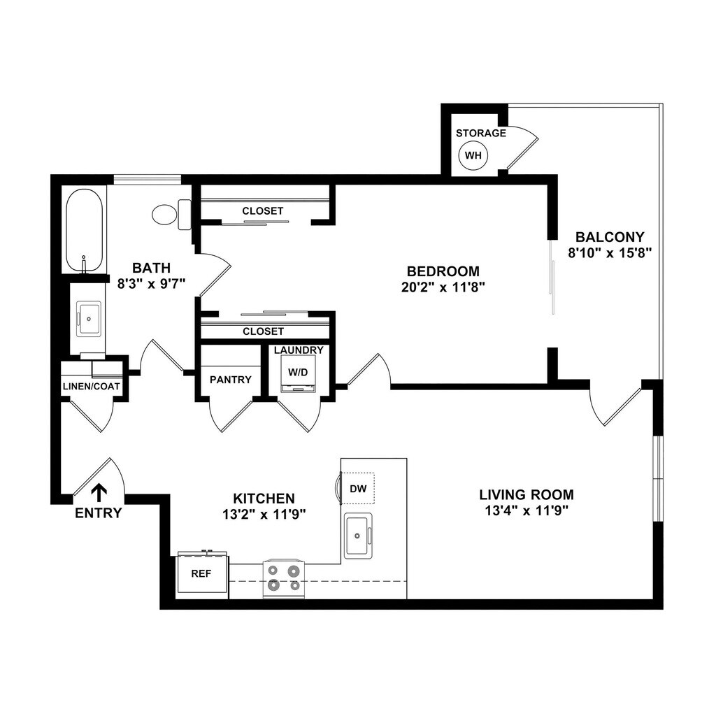 1 Bed, 1 Bath, 763 sq ftPlus FeesAvailable NowLargest 1 BedroomThis is the largest 1 Bedroom at this PropertyModel Gallery
