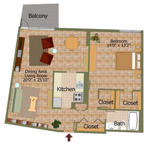 Apartment Model: A-2From $1,633Studio, 1 Bath, 510 sq ftAvailable Now![]()