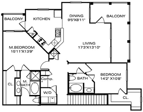 2 Beds, 2 Baths, 1397 sq ftLargest 2 BedroomThis is the largest 2 Bedroom at this PropertyModel Gallery