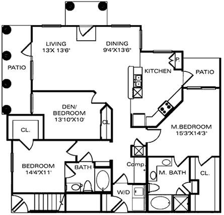 Apartment Model: Call Now to Confirm Availability*$2,1753 Bedroom, 2 Bath, 1487 sq ftUnavailable![]()