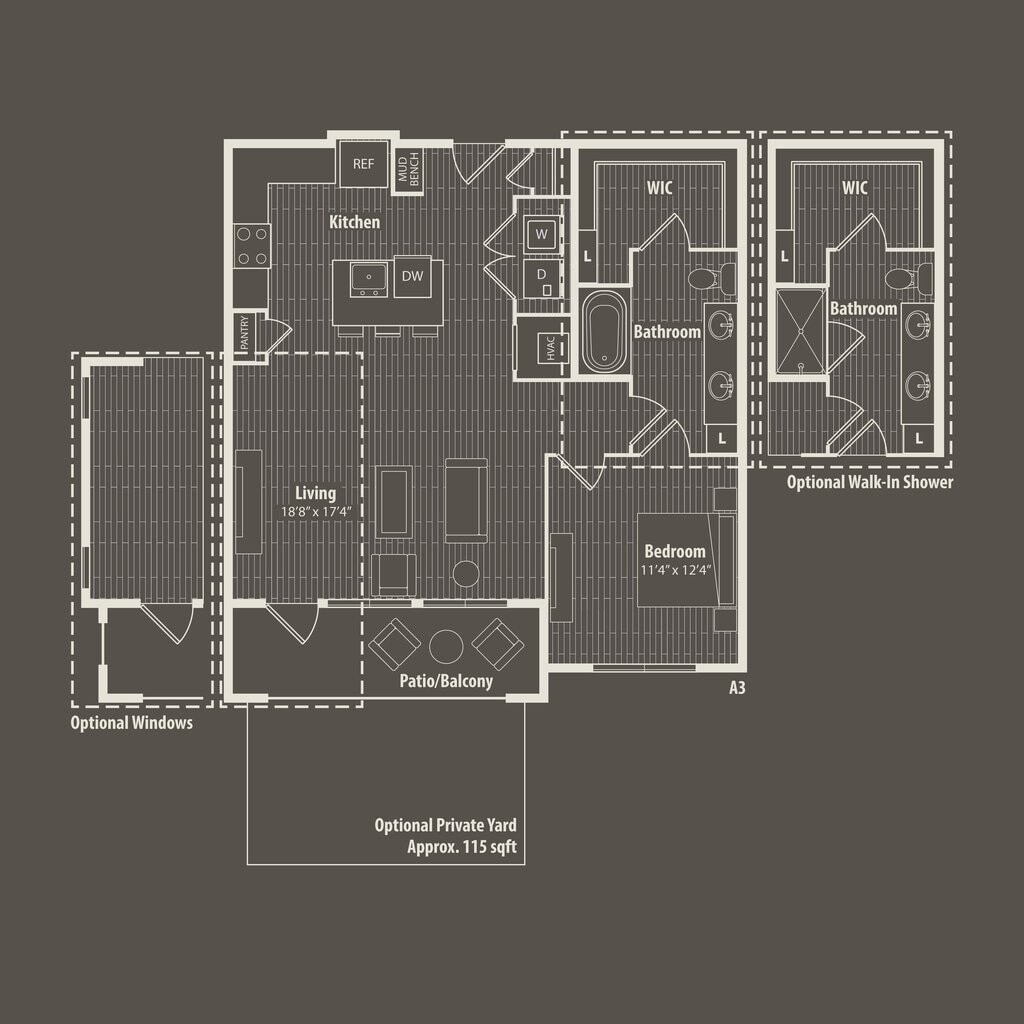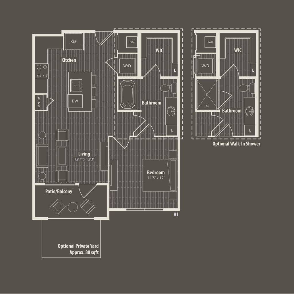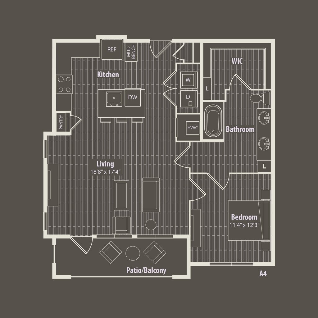Apartment Model: A1From $1,3151 Bedroom, 1 Bath, 650 sq ftAvailable Now![]()