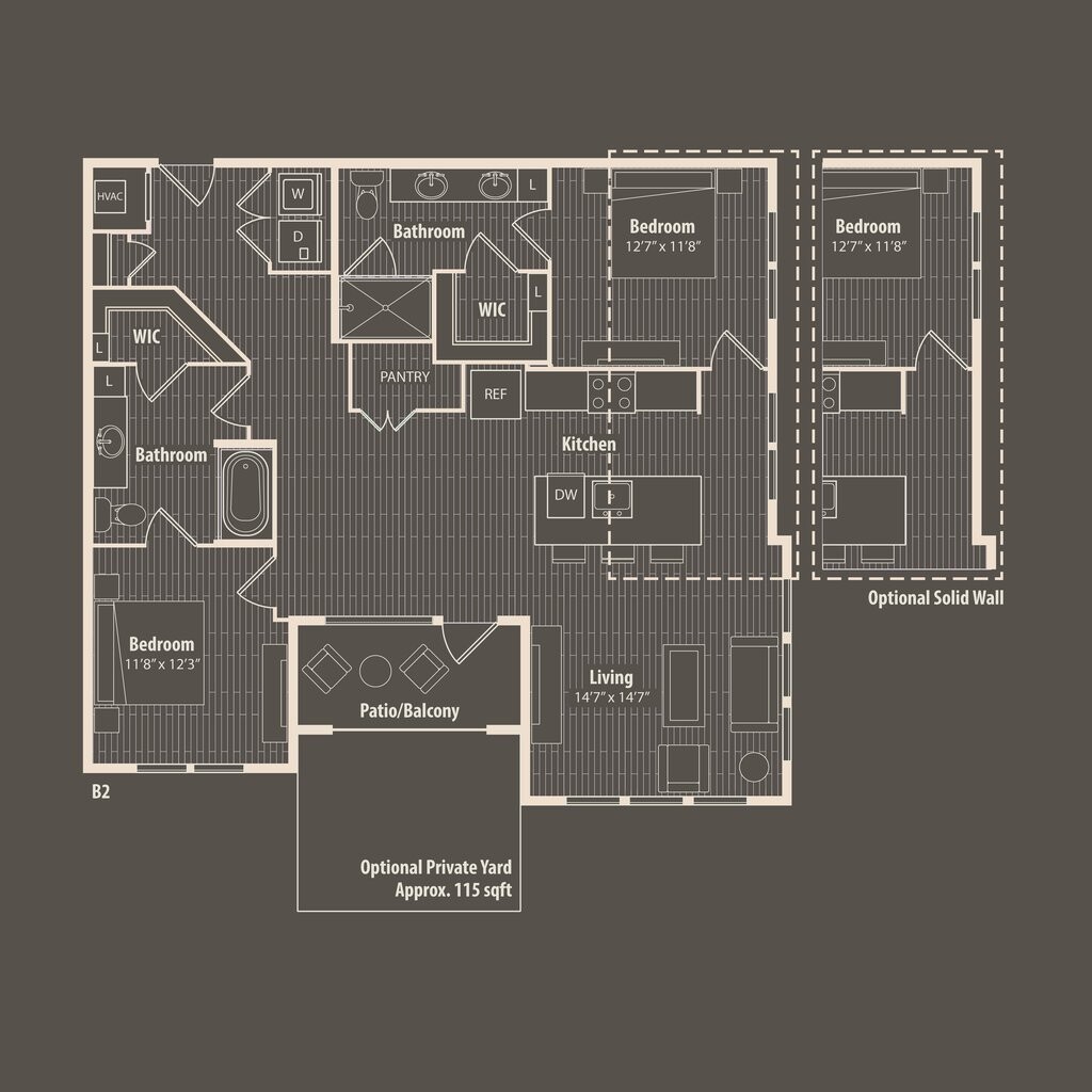 1 Bed, 1 Bath, 725 sq ftAvailable NowModel Gallery