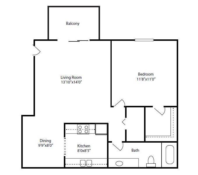 1 Bed, 1 Bath, 670 sq ftAvailable NowModel Gallery