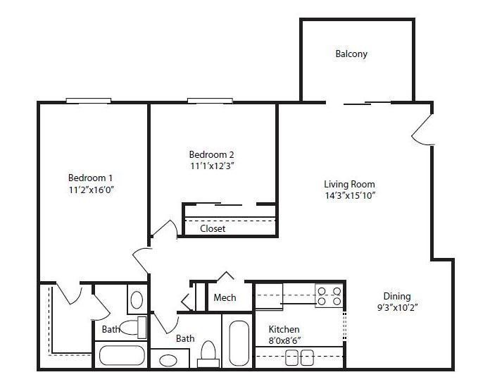 2 Beds, 2 Baths, 1025 sq ftAvailable NowModel Gallery