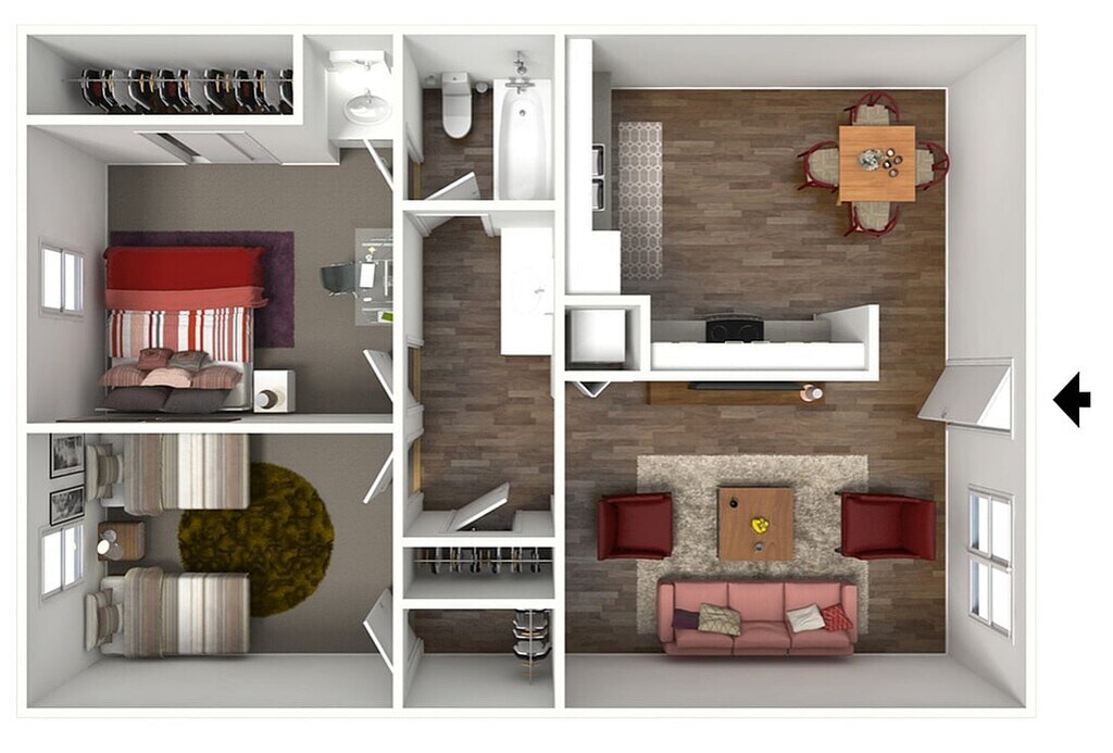 2 Beds, 1 Bath, 750 sq ftAvailable Aug 6Cheapest 2 BedroomThis is the cheapest 2 Bedroom at this PropertyModel Gallery