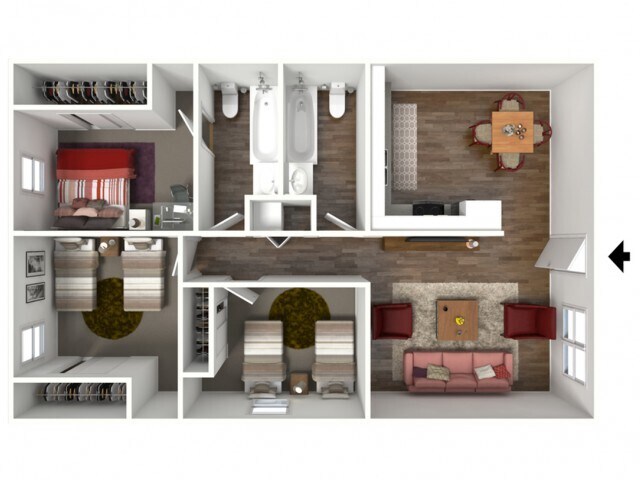 2 Beds, 1 Bath, 750 sq ftAvailable January 2, 2026Model Gallery
