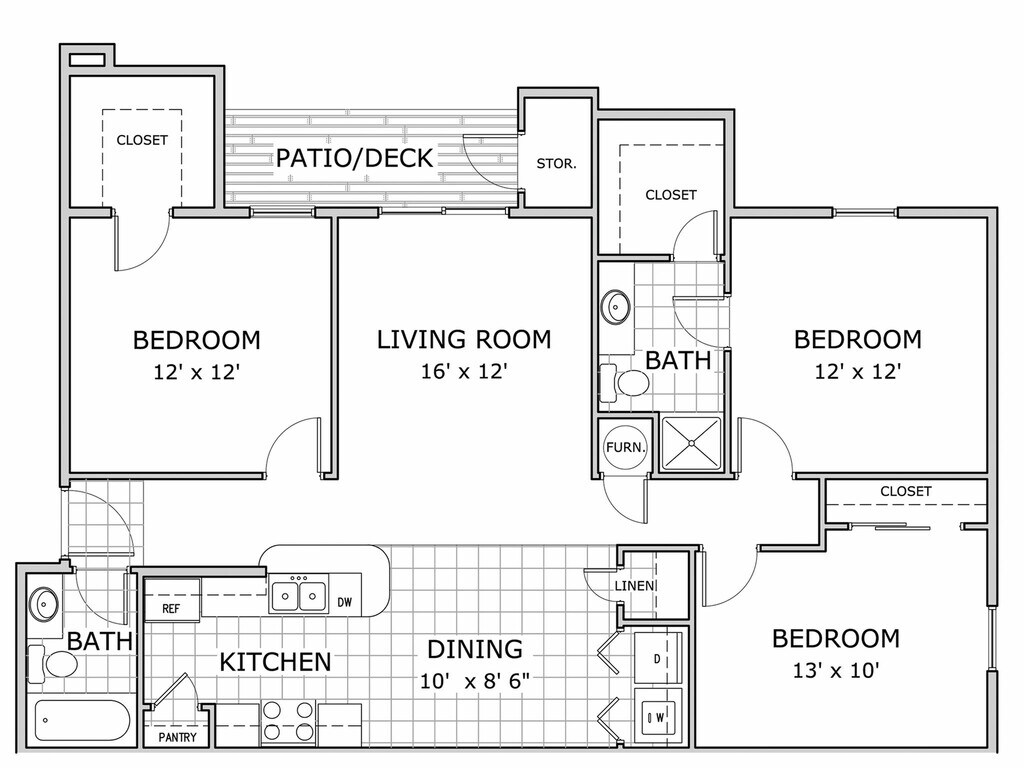 3 Beds, 2 Baths, 1225 sq ftAvailable Dec 5Largest 3 BedroomThis is the largest 3 Bedroom at this PropertyModel Gallery